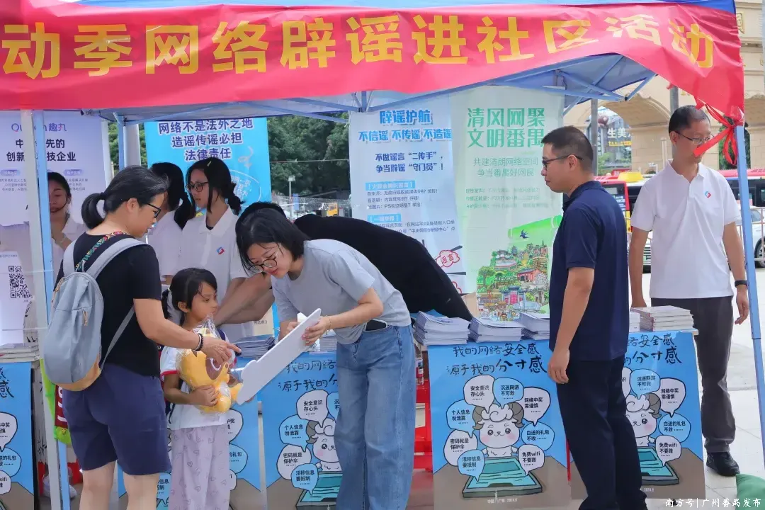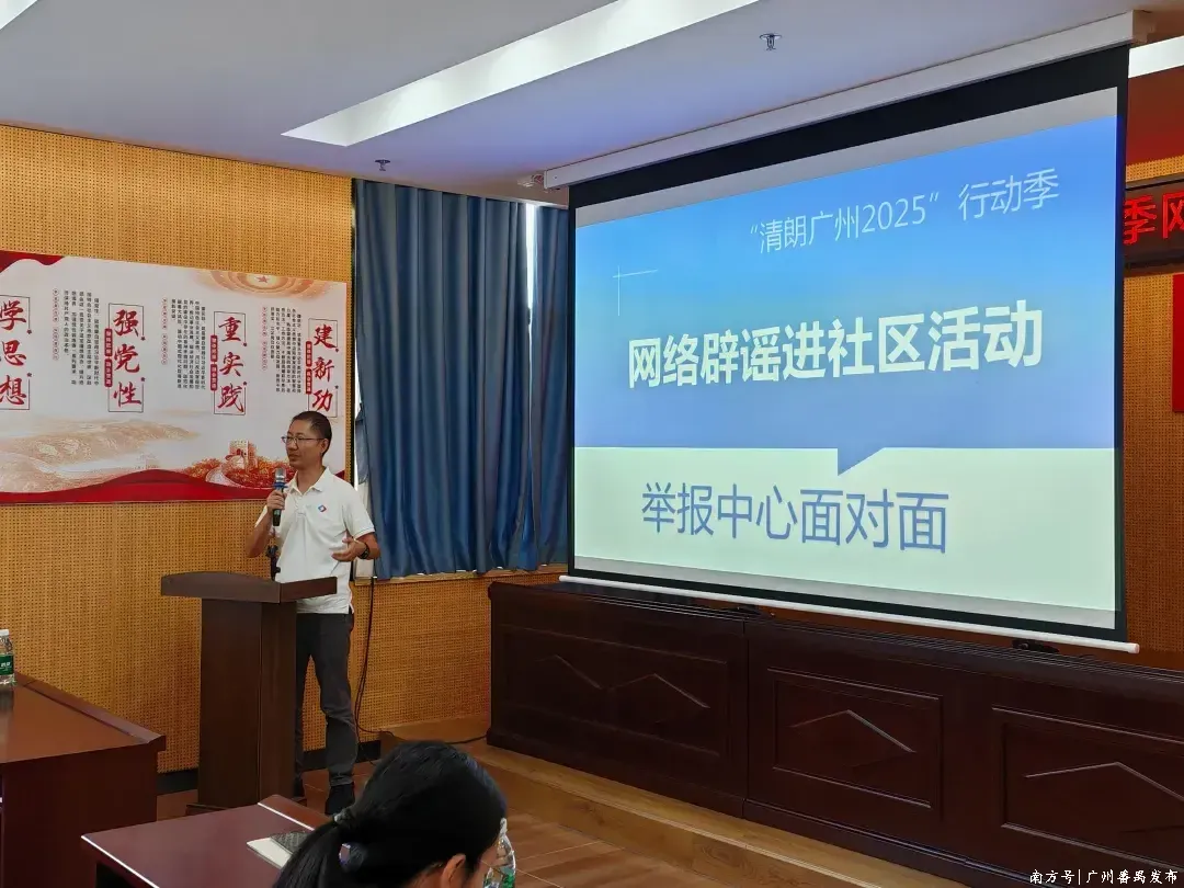 6月20日,“清朗广州2025”行动季网络辟谣进社区活动在番禺区洛浦街广碧社区党群企服务中心举行。活动旨在强化网络生态治理,引导广大网民自觉抵制网络谣言、网络暴力等互联网违法和不良信息,提升网络素养,共同营造清朗的网络空间。